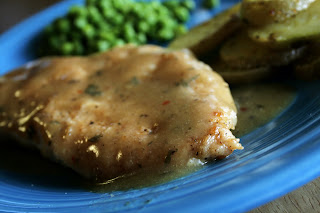 We really love chicken. I think we could probably eat chicken every night and be perfectly fine. Actually, once I was making a weekly meal plan to grocery shop and I realized that every single meal I had planned used chicken. Sometimes though, I feel like I run out of fun ways to use it. You can only have chicken parmesan, chicken calzones, and chicken pasta so many times. That’s why I was so excited to see this recipe in my friend Amber’s blog. It’s such a simple concept and yet I have not made anything similar, at least in a long time. Amber said that she wanted to tweak the sauce a little bit so I made a few changes of my own. With this chicken I served roasted Yukon gold potatoes and peas.